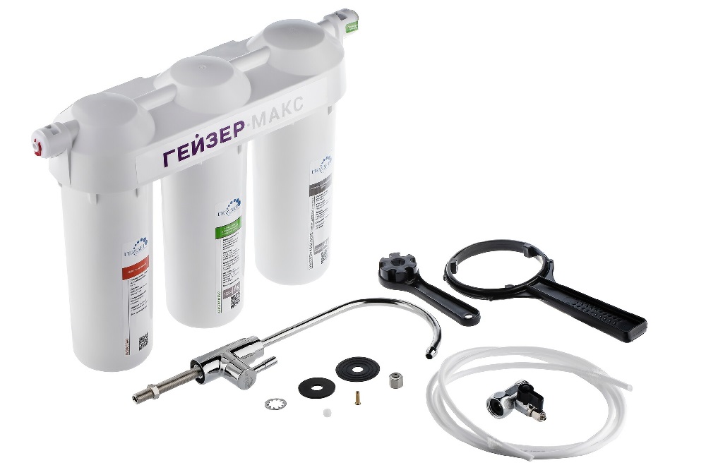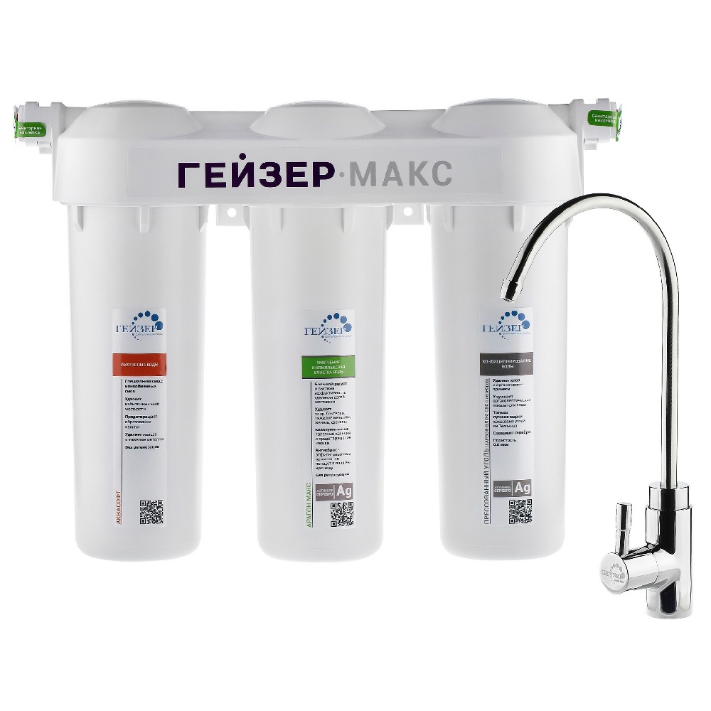 Магистральный фильтр Гейзер Макс используется для доочистки водопроводной воды от вредных примесей (железо, бактерии, хлорорганические примеси, хлор, тяжелые металлы, нитраты, механические частицы, избыток солей жесткости). Также фильтрат корректирует минеральный состав воды.