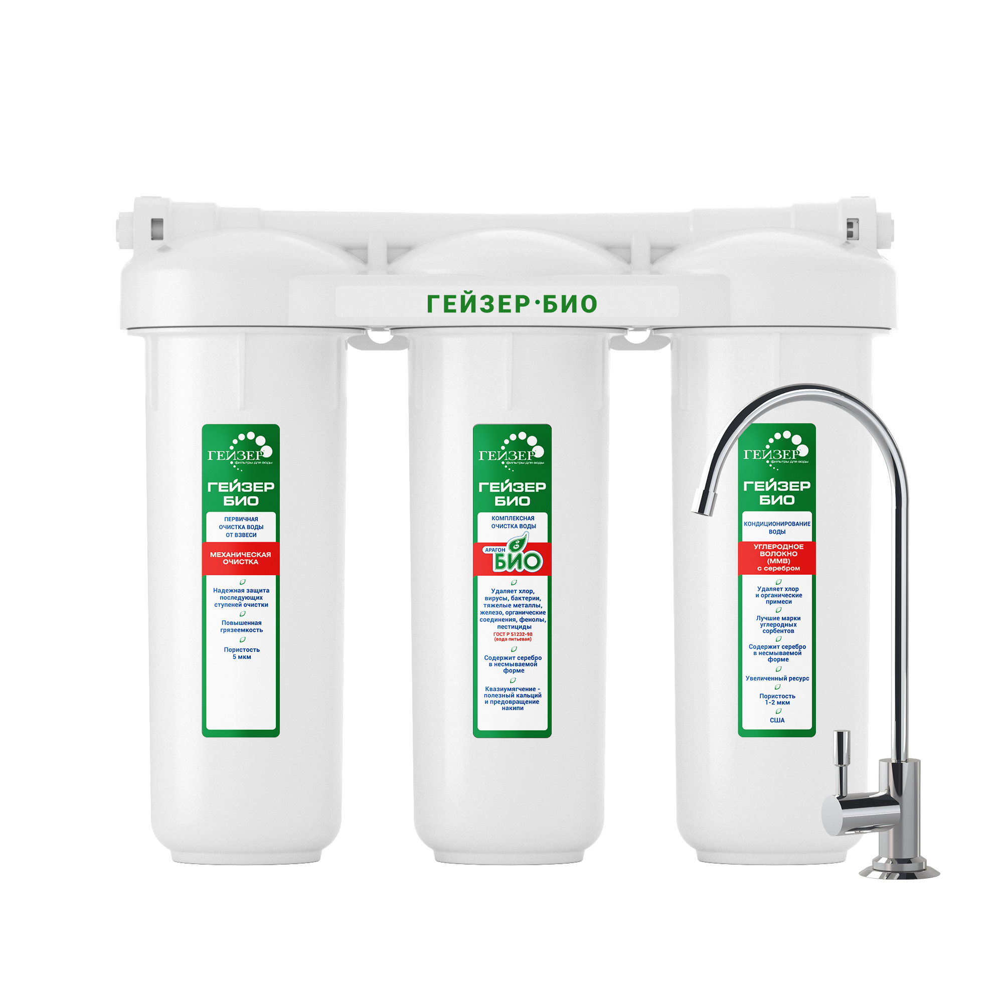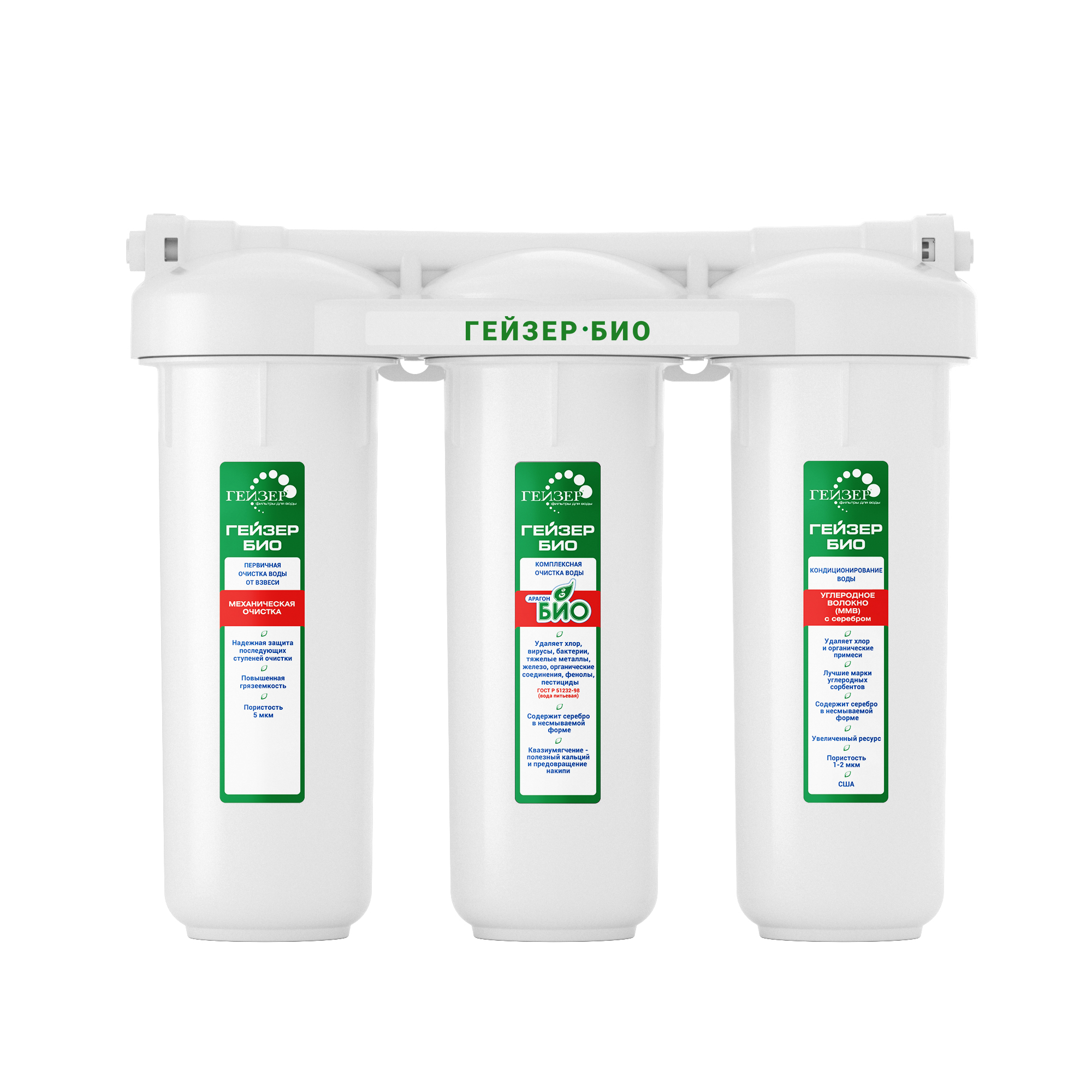 Арагон 2 БИО - удаляет растворенное железо, тяжелые металлы, радионуклиды, снижаем жесткость воды (гарантия отсутствия накипи на нагревательных приборах). 100% удаление бактерий и вирусов.<br>