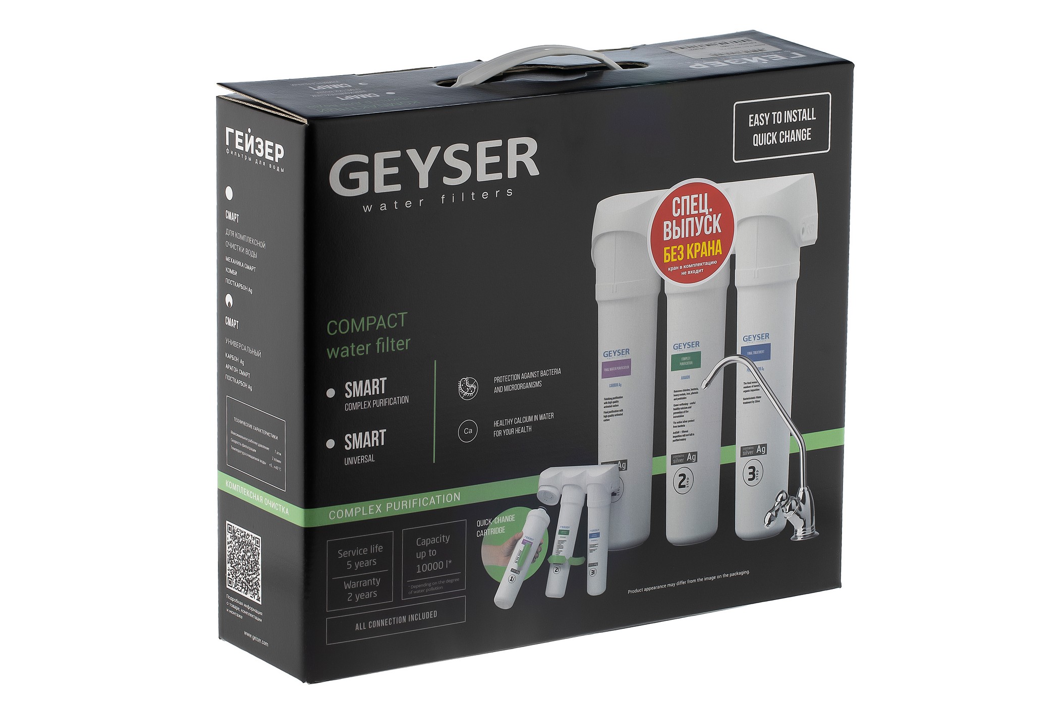 Бытовая система под мойку Гейзер Смарт универсальный с быстросъемными модулями без крана. Скорость фильтрации до 1,5 л/мин. Рабочее давление до 7 атм. Температура воды 5-40 °С. Ресурс до 10000 л.