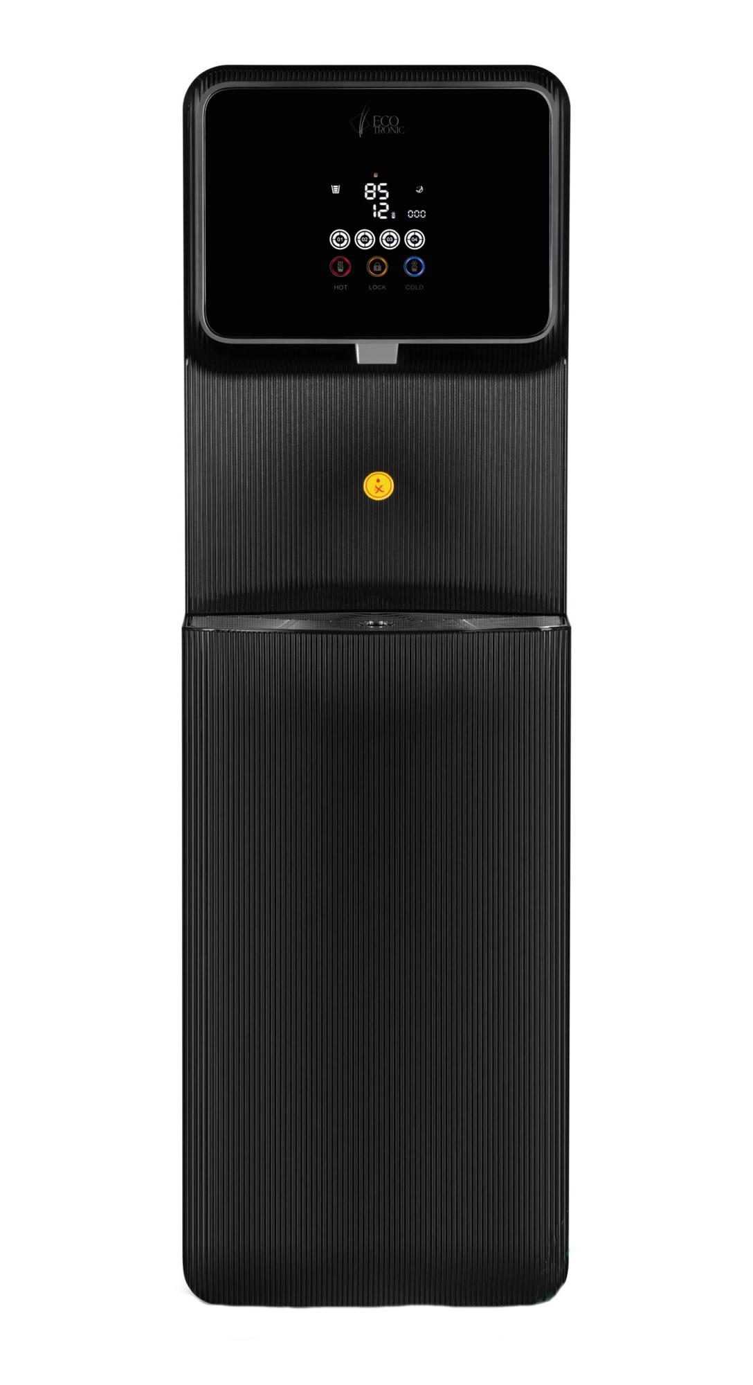 Пурифайер Ecotronic R8-U4LM black предназначен для использования в офисах, на предприятиях и в домах с высоким потреблением воды. Он может заменить кулер, благодаря функциям нагрева и охлаждения воды. Пурифайер R8-U4LM рассчитан на подключение к городскому водопроводу и очистку воду при помощи 4-х ступенчатой системы UF-ультрафильтрации. Он обладает большой производительностью. Пурифайер имеет вместительный бак горячей воды (9л) и накопительный бак с отсеком для холодной воды 23л. Одним из преимуществ данной модели является наличие сенсорной панели управления с LED-дисплеем, на котором выводится температура горячей и холодной воды, индикация работы аппарата и срока службы фильтров. На ней также расположена кнопка блокировки случайной подачи горячей воды (защита детей). Вода в пурифайере R8-U4LM подается порционно, что является защитой от перелива. При однократном нажатии максимально выдается только 1л горячей воды, а холодной воды 1,2л. Подачу воды можно остановить повторным нажатием в любой момент. Каждые 6 месяцев индикация будет напоминать о необходимости замены фильтров. <br>