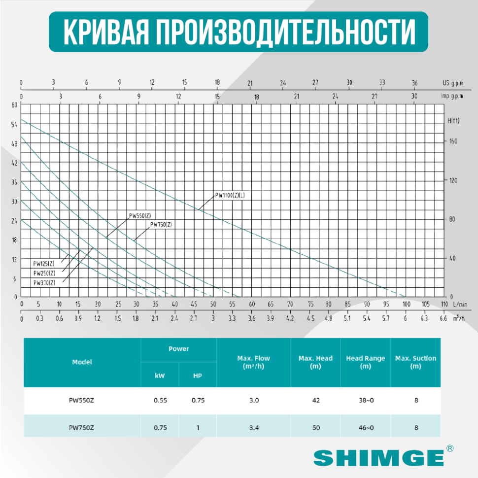 Компактная насосная станция с контроллером Shimge PW 750 Z предназначена для водоснабжения дома, дачи или полива участка. Ее применяют для подачи воды из колодцев и скважин, повышение давления в водопроводе, автоматического полива участка. Насосная станция обеспечивает стабильную подачу воды с производительностью до 3,42 м³/ч и напором до 50 м.