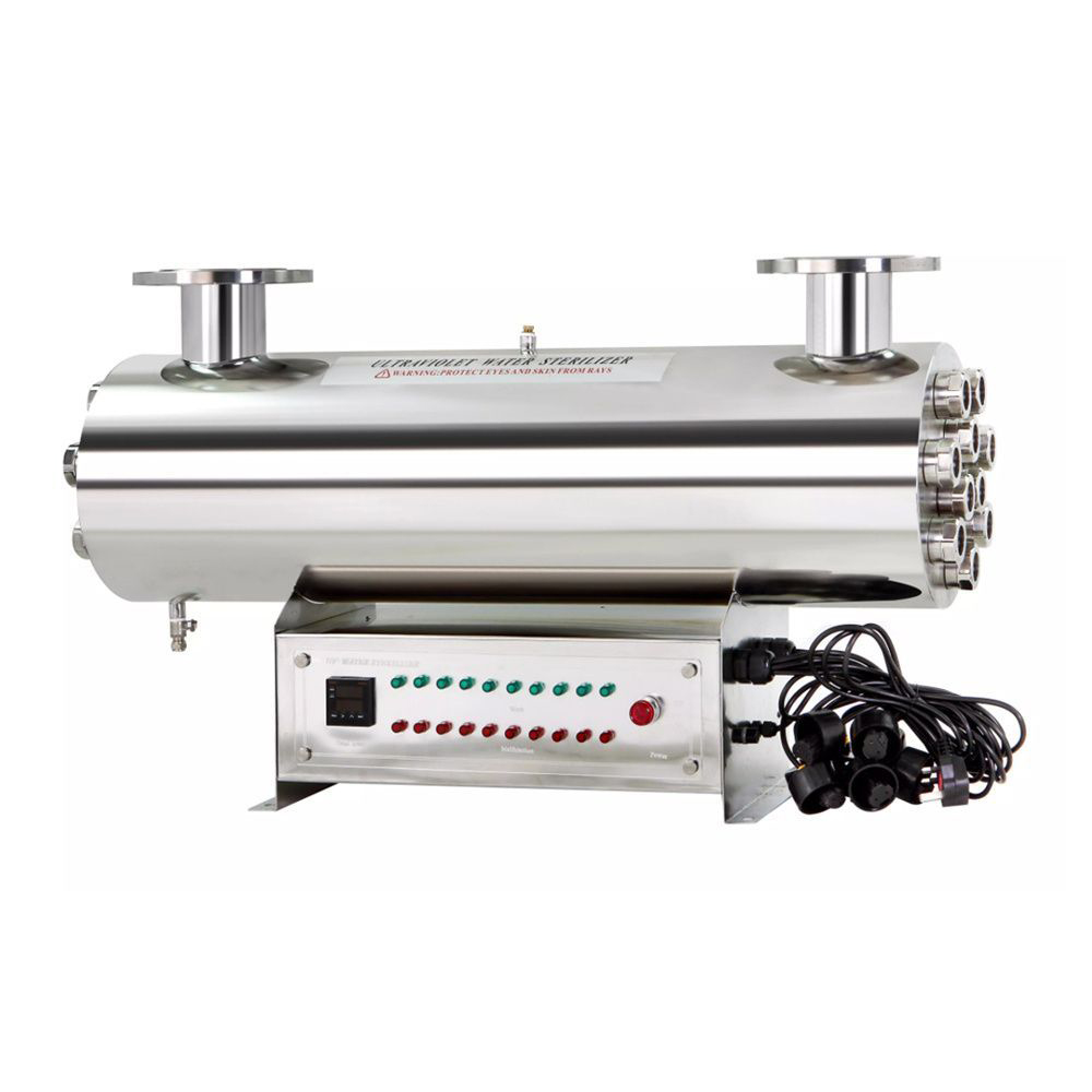 Ультрафиолетовый обеззараживатель SS 550w предназначен для стерилизации питьевой воды ультрафиолетовым излучением. Он уничтожает вредные микроорганизмы, содержащиеся в воде, и делает ее безопасной для использования. Стерилизатор изготовлен из высококачественной нержавеющей стали, пригодной для использования в пищевой промышленности. Количество ламп - 10. В корпусе установки размещается современная бактерицидная лампа (производство Philips) с длительным сроком службы. Система предназначена для работы с визуально чистой, не окрашенной и не мутной водой. Замена лампы производится по истечении срока её службы – 8000 часов непрерывной эксплуатации.<br>